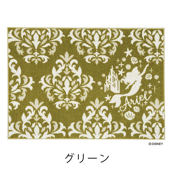 Princess/プリンセス ダマスクラグ DRT-1069 90×130cm ディズニー Disney7◆アリエル プリンセス かわいい おしゃれ 貝 マリン 人魚 マーメイド グリーン 北欧 インテリア 子供部屋 日本製 防ダニ 床暖・ホットカーペット対応 90 130 ラグ スミノエ[NS] Disneyzone