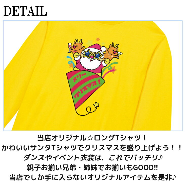 長袖 Tシャツ [ 110 130 150 / XS-XL ] クリスマス クラッカー はじける パリピ サンタ | tシャツ キッズ クリスマス サンタ 衣装 かわいい 子供 女の子 男の子 クリスマスグッズ クリスマス用品 親子 ペア 親子ペア ペアルック お揃い おそろい クリスマスパーティ