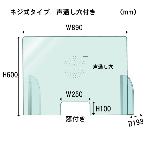 商品のご紹介 サイズ 高さ600mm、横890mm、奥行き193mm 板厚 5mm(脚部分8mm) 加工 声通し穴付き(板中央部) カラー 透明 ご購入前にご確認ください ●受注生産品につき、お客様都合での返品や交換はお受けできませんので、サイズ等再度ご確認の上、ご注文下さい。
