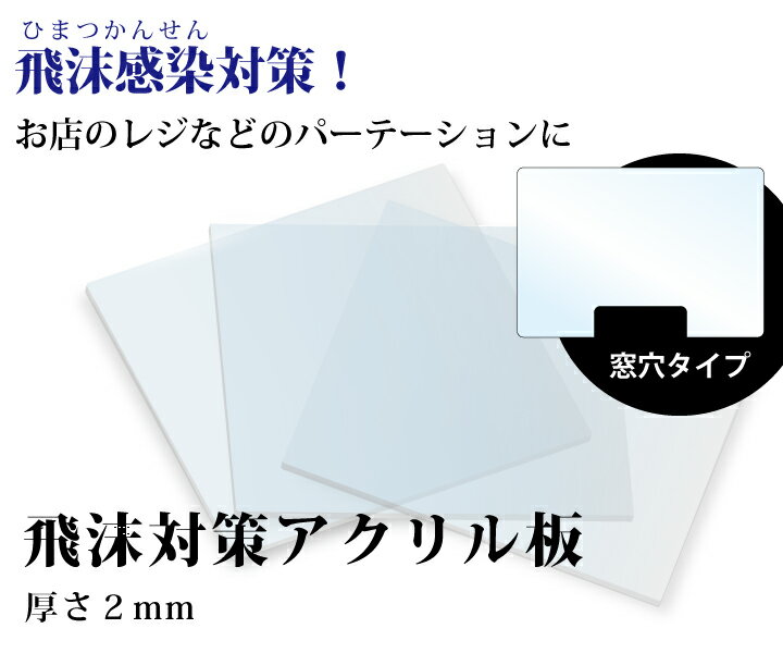 飛沫感染対策アクリル板 窓穴タイプ Sサイズ 厚さ2mm 製品仕様 材料 日本製アクリル サイズ アクリルサイズ:長辺 600×短辺450mm未満 窓穴サイズ:長辺300×短辺100mm 厚み 2 mm 加工 サイズカット、糸面取り